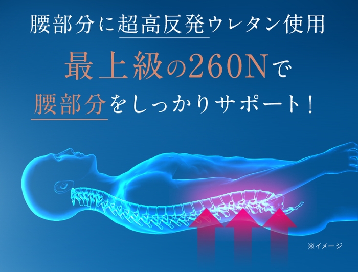 しっかりと支えるために最高レベル260N(ニュートン)の超高反発ウレタンを使用し、今までにないサポート力を実現しました。