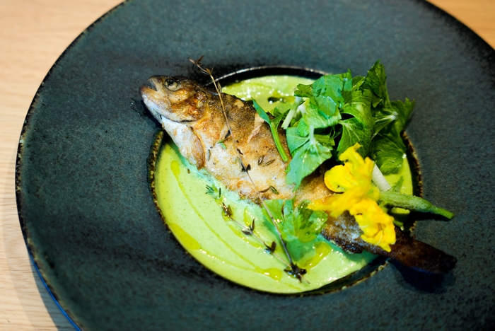 「ニジマスの薪窯焼き」が一品プラスされたスペシャリティコースが予約受付開始しました。