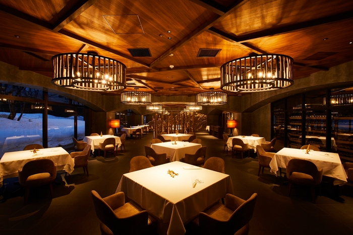 Sonoreとは、フランス語で「朗々と響かせて」という意味の音楽用語で、渓流の瀬音や旬の食材を駆使したフランス料理、希少なワインが心身に朗々と響き渡るという意味が込められています。レストランでは、季節の食材をふんだんに使用し、素材の味を生かしたこの場所でしか味わえないコース料理を提供しています。世界中から厳選した約150種類、2000本の銘醸ワインを用意しており、それぞれの料理に合わせたペアリングの提案も行っているため、料理とワインのマリアージュも堪能できます。奥入瀬渓流の自然をイメージした空間で、四季折々の景色を眺めながら贅沢なひと時を過ごせます。