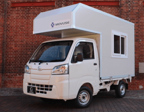 GLION SHOWROOMに展示中の着脱式・軽トラキャンピングカー「MOVUSE」は軽トラックをベースとし、ハウスが取り外し可能。カスタマイズ前提のシンプル構造になっているので、自分流にカスタマイズしてDIYを楽しむ方に人気です。
