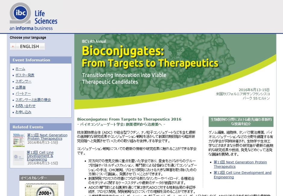 学会:「Bioconjugates: From Targets to Therapeutics 2016-バイオコンジューゲート学会:創薬標的から治療薬へ」