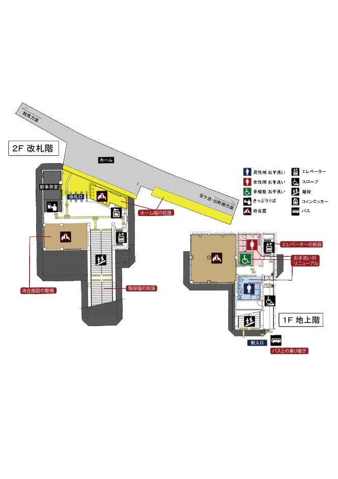 ホームおよび階段の幅を拡張し、観光シーズンなど混雑時における安全性を向上