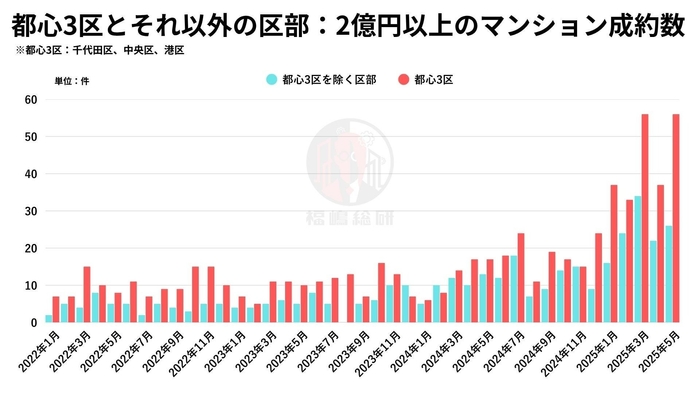 グラフ2.都心3区とそれ以外の区部:2億円以上のマンション成約数