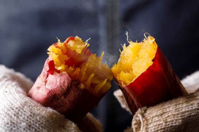 能登の土で育てた紅はるかを天然の貯蔵庫で熟成し、じっくり焼き上げた焼き芋。