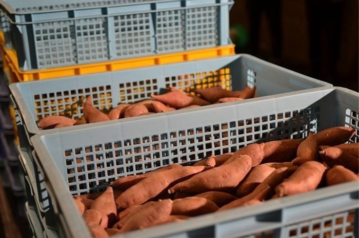 宗玄酒造㈱の協力を得て、2021年にさつまいもを貯蔵する実験を行いました。その結果、約50日の貯蔵により熟成が進み、さつまいもの糖度が22度から36度に上がることがわかりました。