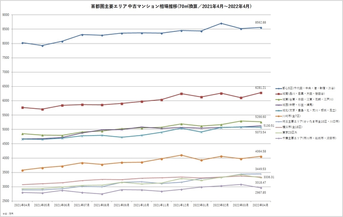■主要エリア 中古マンション相場推移(2021年4月~2022年4月)