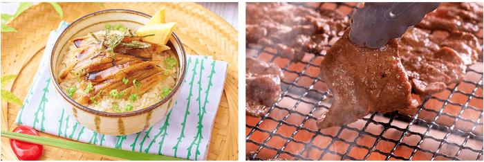 左:ますやにも仙台名物牛タンメニューが登場しますが、こちらは卓上の陶板で銘々が好みの加減で焼き上げるスタイルでご提供いたします。夏野菜と一緒にお楽しみください。