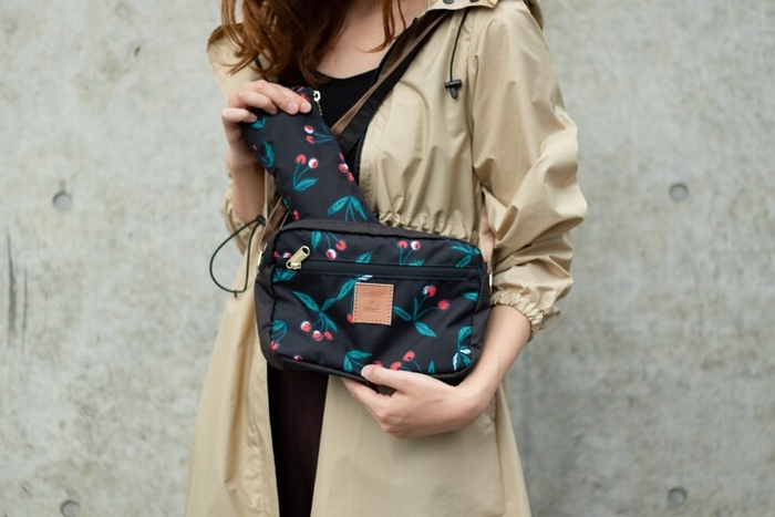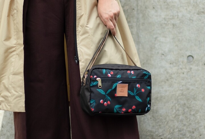 コラボ第2弾は、anello®で人気のバッグをベースに、Wpc. ™でも特に人気の柄、「ピオニ」「チェリー」「フルーツ」「カメリア」が、今回のコラボのための特別カラーで登場しました。