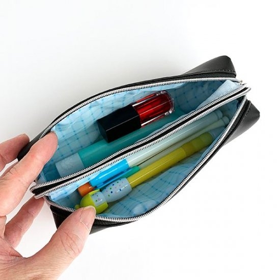 ペンポーチもご用意しています。Wファスナーで仕分けもできる機能的な仕様です。