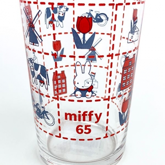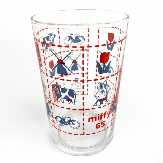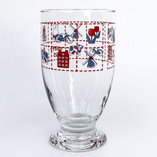 トップバッターは、ガラスのコップです。前面にオランダモチーフのデザインが施されていて、キュートです♡ミッフィーはもちろん、チューリップや風車などのオランダをイメージするモチーフがデザインされていますね。