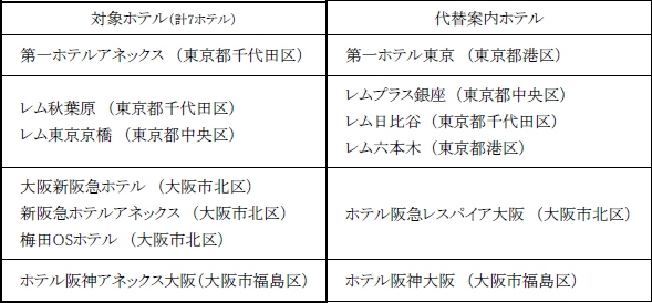 なお、休業対象のホテルにご予約をいただいているお客様には、近隣の直営ホテルを代替としてご案内します。