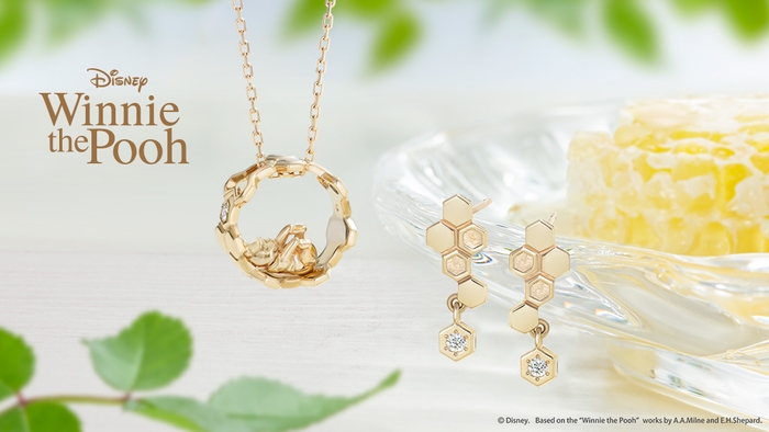 「くまのプーさん」 新作ネックレス&ピアス “幸せを溜めこむ”幸運のモチーフ、ハニカムをデザイン