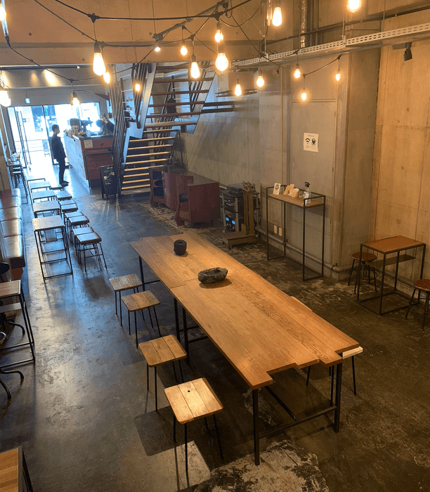 1Fはスペシャルティコーヒーを提供するカフェ「sensing-touch-of-earth(センシング・タッチ・オブ・アース)」2Fは防音室やインテリアのショールームとレンタルシアターの小さな複合施設です。