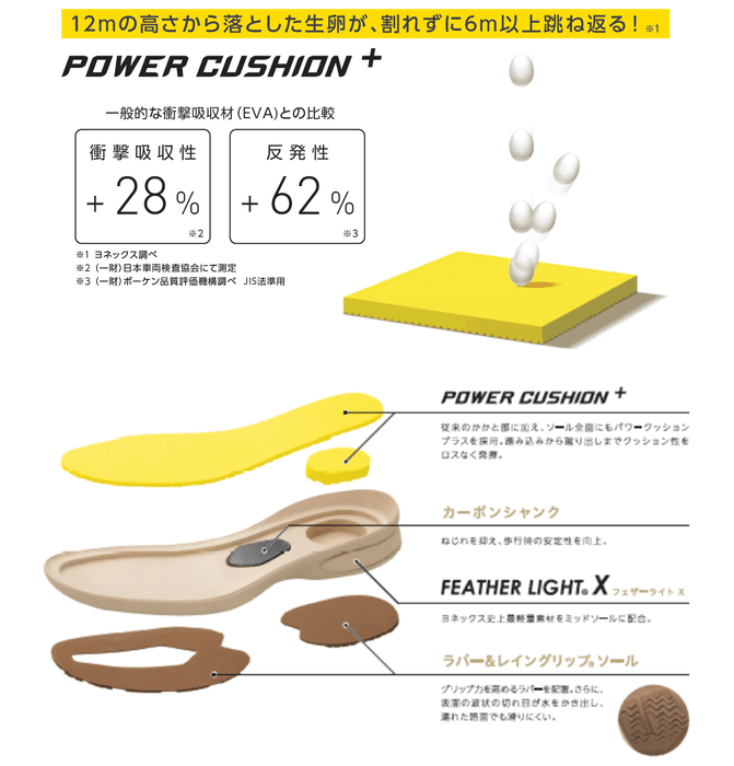 12mの高さから落とした生卵が、割れずに6m以上跳ね返る※「パワークッション®プラス」搭載 “歩くことが楽しくなる心地よさ”を実現するウォーキングシューズ 「パワークッション L118(女性用)」「パワークッション M118W(男性用)」 2023年4月上旬より発売 | NEWSCAST
