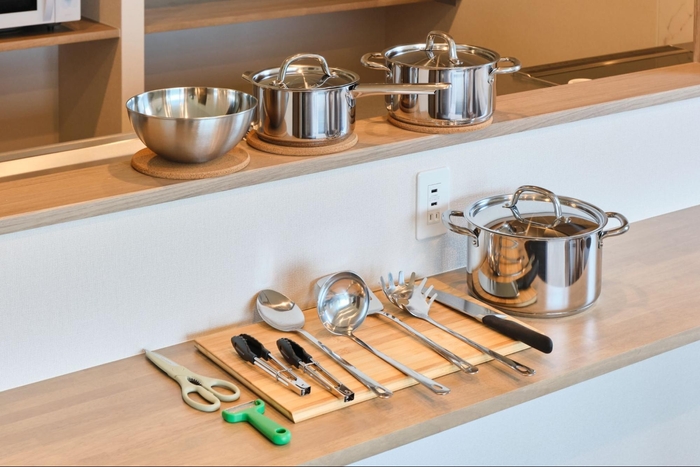 当施設のキッチンには、調理を行うに十分な調理器具・調理家電が揃っています。