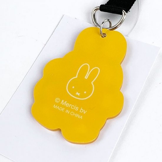 お馴染みの、オレンジのお洋服に身を包んだミッフィーのキーホルダーです。ダイカットされたアクリルのプレートが、そのままキーホルダーに♪背景のイエローも、ミッフィーらしさを感じますね