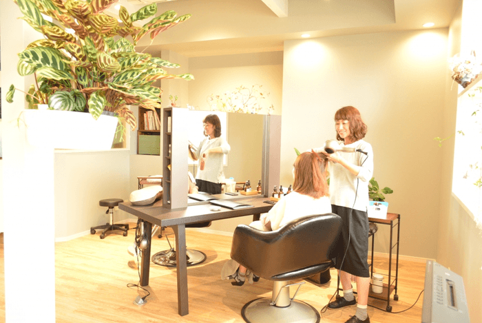 2階のみの店内は穏やかな空間で、2台のシャンプー台はそれぞれが独立しているので、施術のペースに合わせて使用しプライベートで特別な時間が過ごせます。