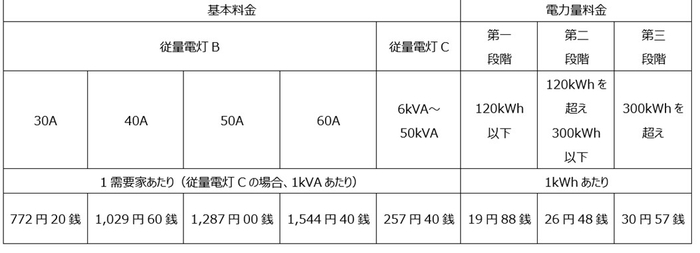 ■電気料金表