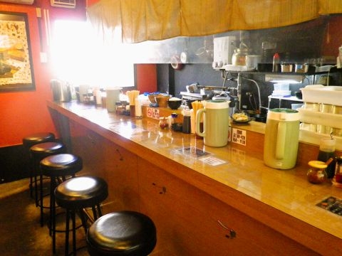 店内は、カウンター席が並ぶ小さめの空間です。