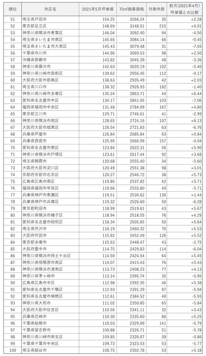 2021年5月の対象件数が30件以上ある全国186市区よりランキングを算出。