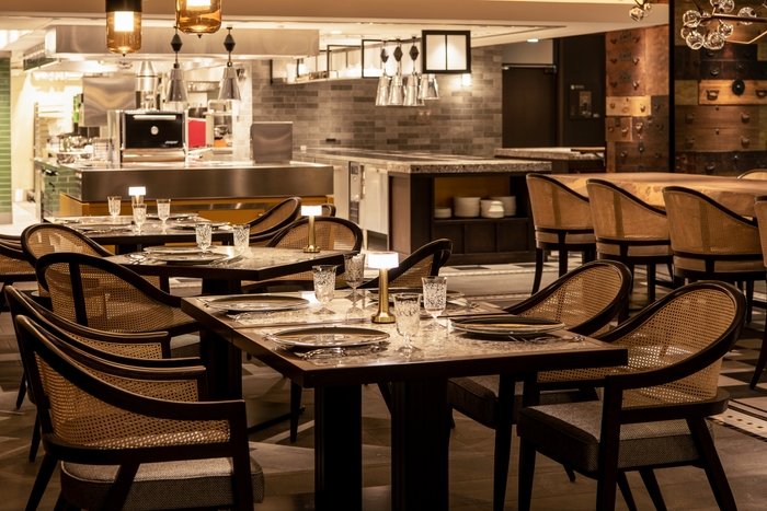 スタイリッシュなオープンキッチンでは、炭火のみを熱源とするスペイン産ジョスパーチャコールオーブンを使い、シェフが希少な和牛やシーフード、地元産の新鮮な野菜など素材の旨みを最大限に引き出します。