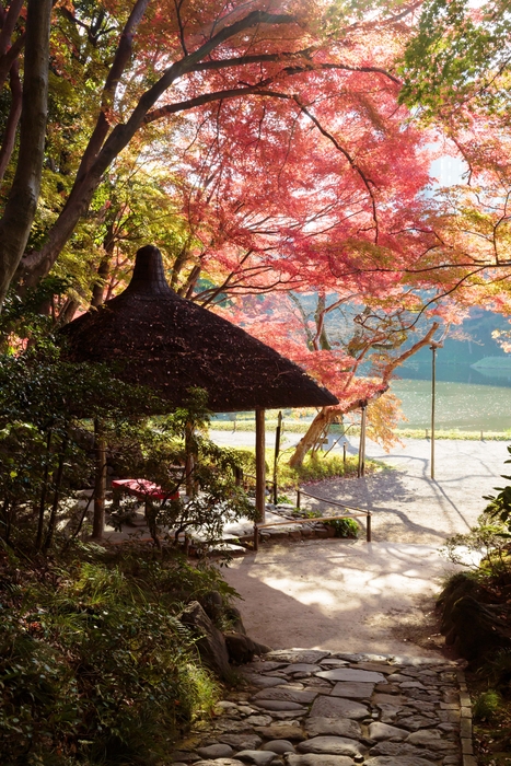 都内に現存する大名庭園の中では最も古い小石川後楽園。小石川台地の高低差を活かした園内には、「海・山・川・田園」に見立てた風景が展開されています。「山の景」では深山を思わせる急峻な地形にイロハモミジが配されており、晩秋になると山を赤く粧(よそお)います。