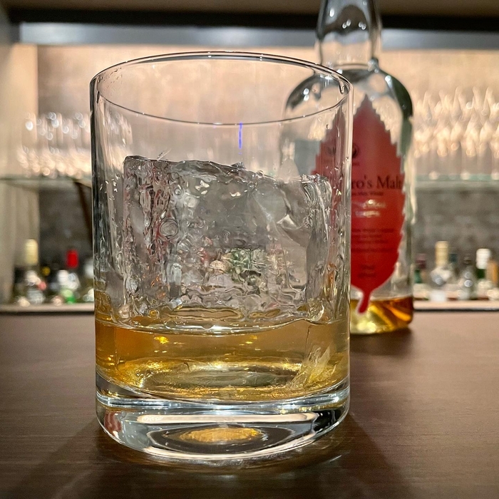 Calmaは厚岸5種を始め、希少なジャパニーズウイスキーの品揃えが約30種ございます。職人が丹念に削り出した氷のロックでその芳醇な味と香りをお楽しみください。