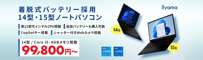 iiyama PCより、着脱式バッテリー採用14型・15型ノートパソコン 販売開始
