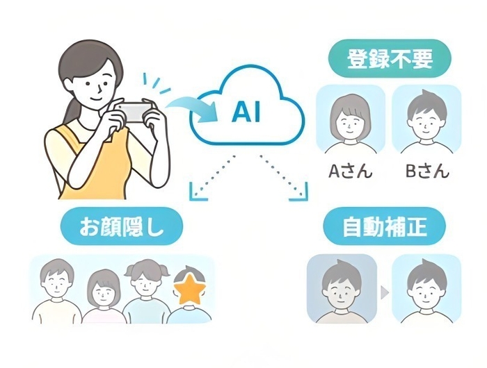 こうした課題を解決するため、AIによる顔認識技術を活用し、子どもの写真をクラスごとや子どもごとに自動で正確に分類する「せんせいフォト」サービスの提供を2025年5月から開始しています。今回の機能拡充により、写真の撮影から共有までの業務をさらに効率化し、職員の負担を一層軽減することが可能になります。