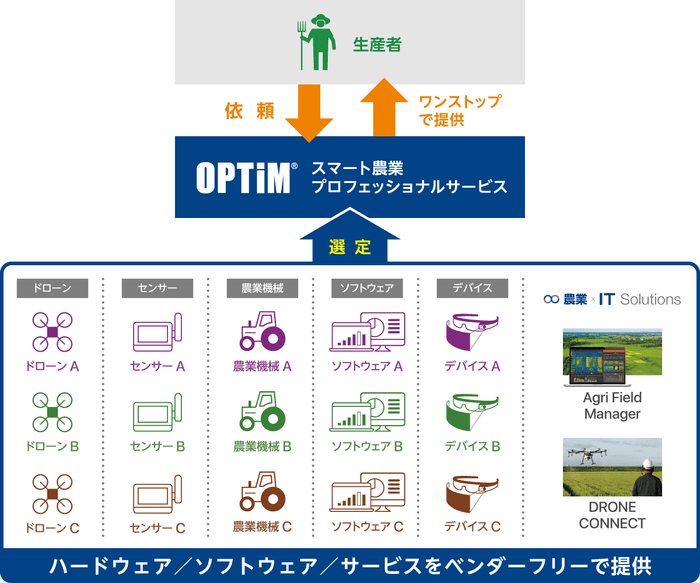 スマート農業に必要なあらゆる ハードウェア、ソフトウェア、サービスを一括で提供
