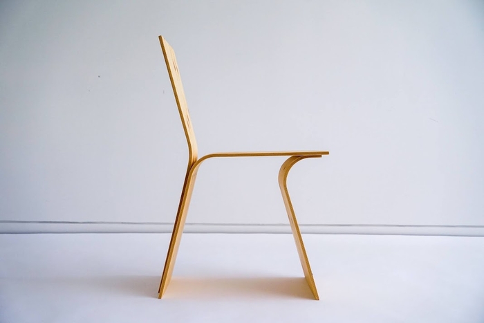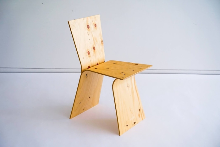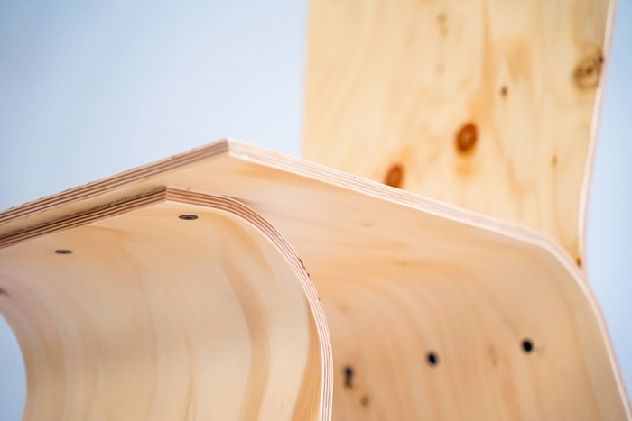 一般的な建築資材である合板を曲げ加工して作り上げた、やわらかい椅子