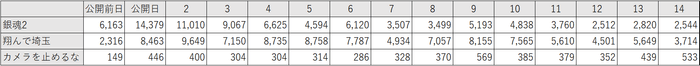 カメラを止めるな:17,964件、銀魂2:116,115件、