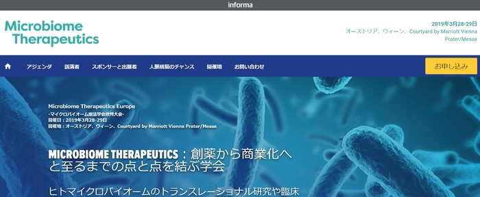 先端分野の市場情報を提供する株式会社グローバル インフォメーション(神奈川県川崎市、代表取締役社長:小野 悟)は、2019年3月28-29日 オーストリア、ウィーンにて開催されますKNect365 Life Sciences主催 国際学会 「Microbiome Therapeutics Europe-マイクロバイオーム療法学会欧州大会」の代理店として参加のお申込み受付を11月30日より開始致しました。