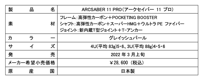 本製品は新設計・新構造採用により、従来品「ARCSABER 11」の特徴である球持ちと打球感の良さをさらに進化させ、より精密にコースを狙えるコントロール性能を実現しました。