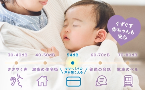使用時の音は、ママ・パパの声が聞こえやすい大きさなので、赤ちゃんが驚く心配もありません。