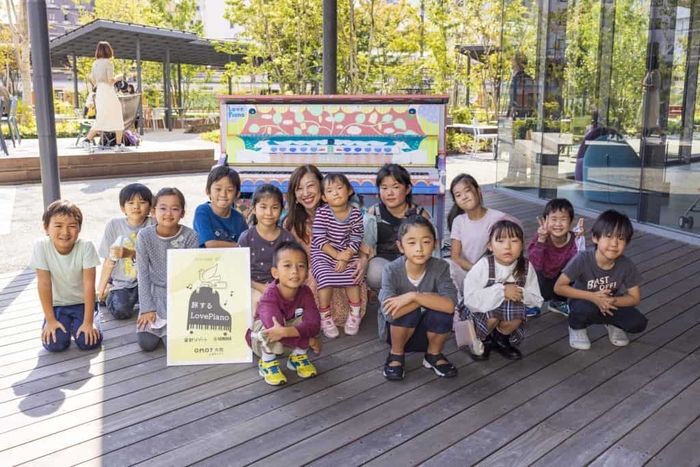 青空が広がる晴天の中、緑豊かなガーデンエリアみやぐりんにて、イベントを実施しました。ヤマハミュージック 大阪なんば店の協力のもと、ヤマハミュージックジャパンのピアノデモンストレーター土屋絵里氏にお越しいただき、有名な作曲家やピアノの構造などをクイズ形式で紹介したり、手遊びを交えながら演奏したりしました。普段は見られないピアノの中や裏側を見て、実際に触れ、音が奏でられる仕組みを学び、子どもたちはピアノや音楽について理解を深めました。イベント終了後は、子どもたちに自由に旅するLovePianoの演奏を楽しんでもらいました。保護者からは「このような機会を考えてくださって本当にありがたい。地元の子どもたちに沢山の経験をさせてもらえるイベントをぜひしてほしい」という声もあがりました。