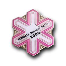 東北の団体らしく雪の結晶をモチーフにしたオーダーメイドアイテムは、日頃の成果を競うイベントで参加者に贈る「メディカルラリー’09ピンズ」。ニッケルメッキとソフトエナメルを用いて仕上げられた正六角形の仕様は、救急現場で必ず見かける「スターオブライフ」もイメージしているそうです。オリジナルピンズの製作は恒例となっているため、コレクションしていらっしゃる方も多いとのことで、高品質な出来栄えとなった2009年版もイベントのPRに大活躍してくれたようです。