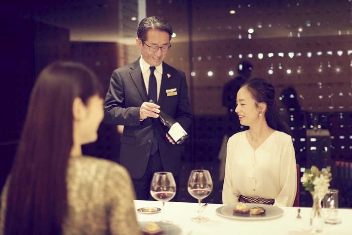 お料理は、ワインとのマリアージュを楽しむのがおすすめです。約2,000本のワインを納めるワインセラーには、提携ワイナリー「ドメーヌ ミエ・イケノ」のヴィンテージを多く取り扱っています。ソムリエが厳選したワインと料理とのマリアージュを堪能する食体験を楽しめます。