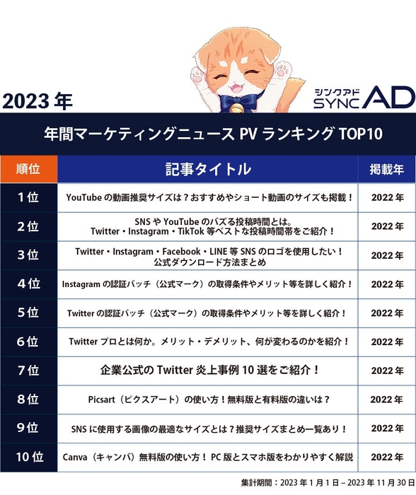 Webマーケメディア syncAD(シンクアド)、2023年 年間マーケティングニュースランキングTOP10を発表!Xマーケティング事例集も公開
