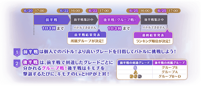 イベントの開催期間は、前半戦と後半戦の2部で構成されます。