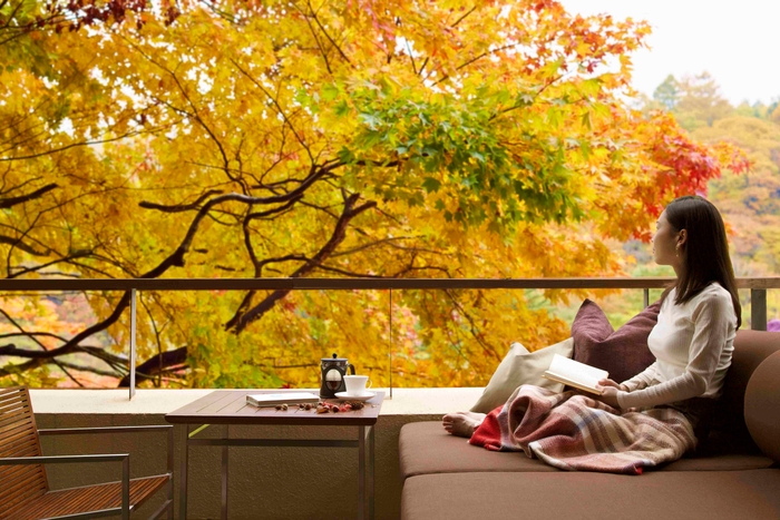 星のや軽井沢 源泉かけ流しの温泉と軽井沢の自然に癒される秋のご滞在の紹介 紅葉の見頃:10月中旬~11月下旬