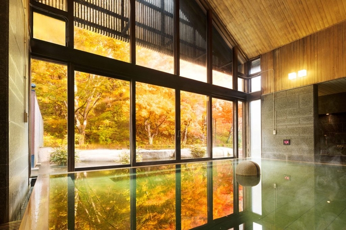香り高い檜の内湯と、紅や黄に色づく樹々を間近に眺めながら入浴できる露天風呂、サウナ、そして涼やかな空気で外気浴ができるスペースがあります。日帰り温泉として営業していますが、朝は宿泊者専用の時間を設けています。混雑を気にせず、朝日が降りそそぐ温泉でスッキリと目覚めることができます。秋の景色と野鳥たちの鳴き声を聞きながら、ゆっくりと入浴を楽しんではいかがでしょうか。