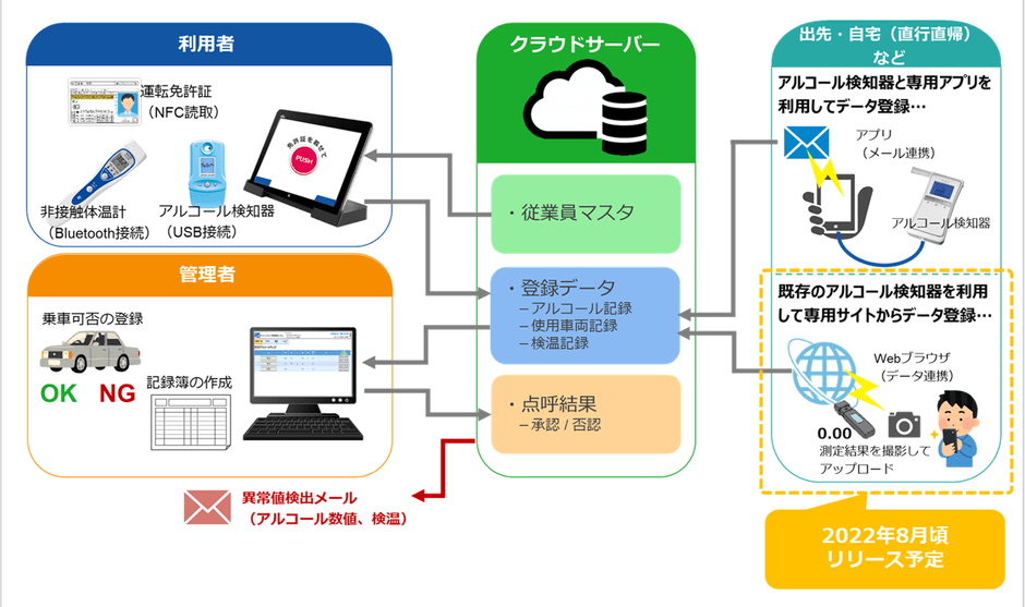 令和4年道路交通法改正対応  クラウド型アルコール検査記録システム 「アルコールチェック:ご安全に!」提供開始  安全運転管理者の管理業務をサポート