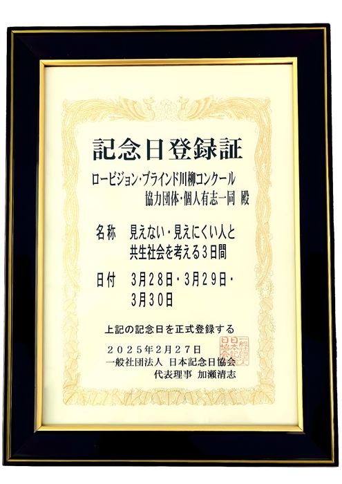 株式会社パリミキ(本社:東京都港区、 代表取締役社長:恒吉裕司、 以下「パリミキ」)は、視覚に障害のある人への理解啓発を促し、より良い共生社会を実現するために、主催している「ロービジョン・ブラインド川柳コンクール」の協力団体と関連する個人に呼びかけて、有志の方々とともに記念日の申請を行い、一般社団法人 日本記念日協会(所在地:長野県佐久市、代表理事:加瀬清志)より認定を受け、3月28日・29日・30日を「見えない・見えにくい人と共生社会を考える3日間」として制定いたしました。日付は、3月28日29日30日を、共生社会を 「み(3)んなをつ(2)なぐ橋(8)を、み(3)んなで作(29)り、み(3)んなの未(3)来を大(0)きくする」 と 捉えた語呂合わせでの登録となりました。