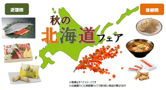 新型コロナウイルス感染拡大の影響が長期化し、内食や中食の需要が高まっています。当社では、遠出ができない中、少しでもご自宅で旅行気分をお楽しみいただくため、日本各地の銘産フェアやご当地フェアを実施しており、大変ご好評をいただいております。7月に実施した「夏の北海道フェア」に引き続き、食欲の秋にぴったりの北海道自慢の”おいしさ”を近畿圏・首都圏それぞれのライフに集めました。