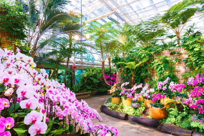 国営沖縄記念公園 熱帯ドリームセンター(沖縄県本部町)ではランの花を中心に、珍しい熱帯・亜熱帯性の植物を植栽・展示しています。熱帯樹林の中に突如現れた古代遺跡をイメージしており、施設全体でフォトジェニックな空間を演出しております。