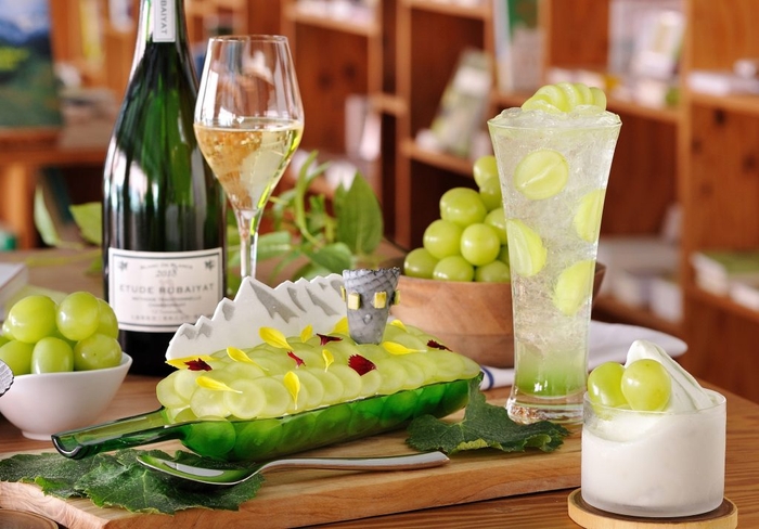 自然豊かな八ヶ岳エリアのリゾートホテル「星野リゾート リゾナーレ八ヶ岳」では、2021年9月1日~30日にフルーツ王国山梨の秋・ぶどうを味わい尽くす「シャインマスカットフェア」を開催します。味覚の秋に楽しんでいただきたい、ぶどうをテーマにした企画です。ホテル内の「BOOKS&CAFE」では、シャインマスカットをたっぷりと使った3種類のスイーツを販売。隣接する「八ヶ岳ワインハウス」では、おすすめの白ワインとのマリアージュを楽しめます。また、ぶどうにまつわる本やグッズも揃い、旬を感じるひとときが過ごせます。