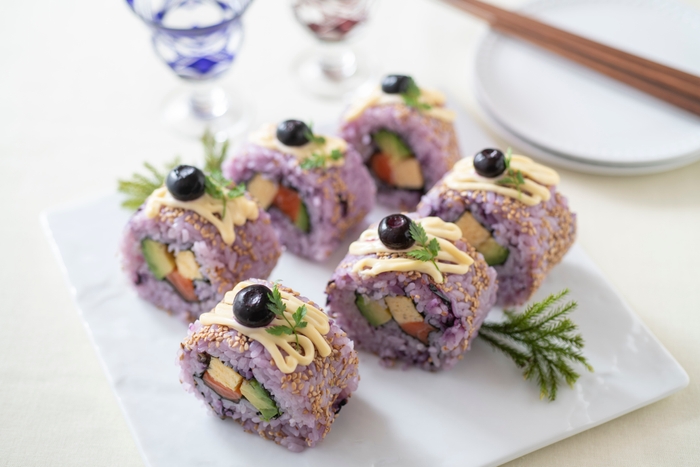 ブルーベリーのきれいな紫色は抗酸化力の証 色を活かして、栄養価も高く、見た目もかわいい華やかなメニューを