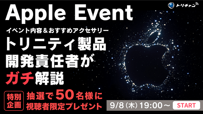 また本日9月8日(木)19時より、Apple Event開催記念として、当社の開発責任者とともに開発秘話やおすすめ製品をYouTubeLIVEにて生解説します。
