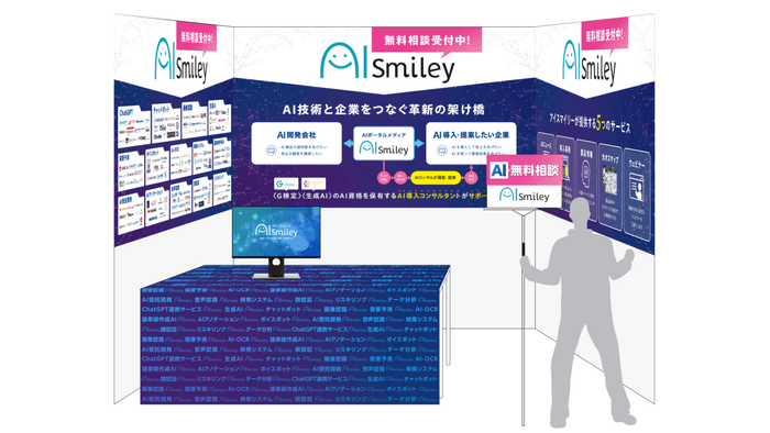 会場では、生成AIサービスを国内最大級で取り上げるAIポータルメディア「AIsmiley」の活用方法のご案内とAIプロダクト導入の相談を受け付けます。